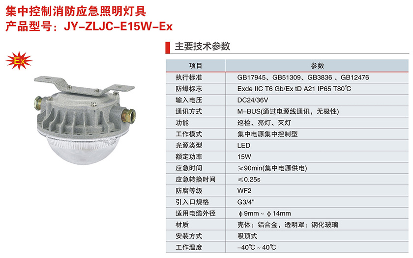 JY-ZLJC-E15W-Ex系列集中控制消防应急照明灯具