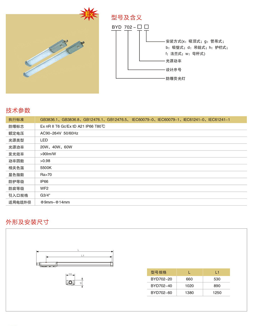 BPY系列防爆免维护低碳LED荧光灯(IIB)