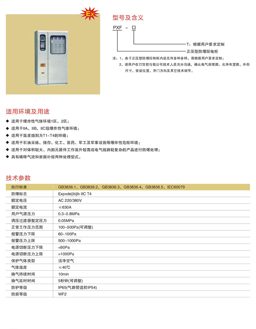 PXF系列正压型防爆配电柜(IIB、IIC)