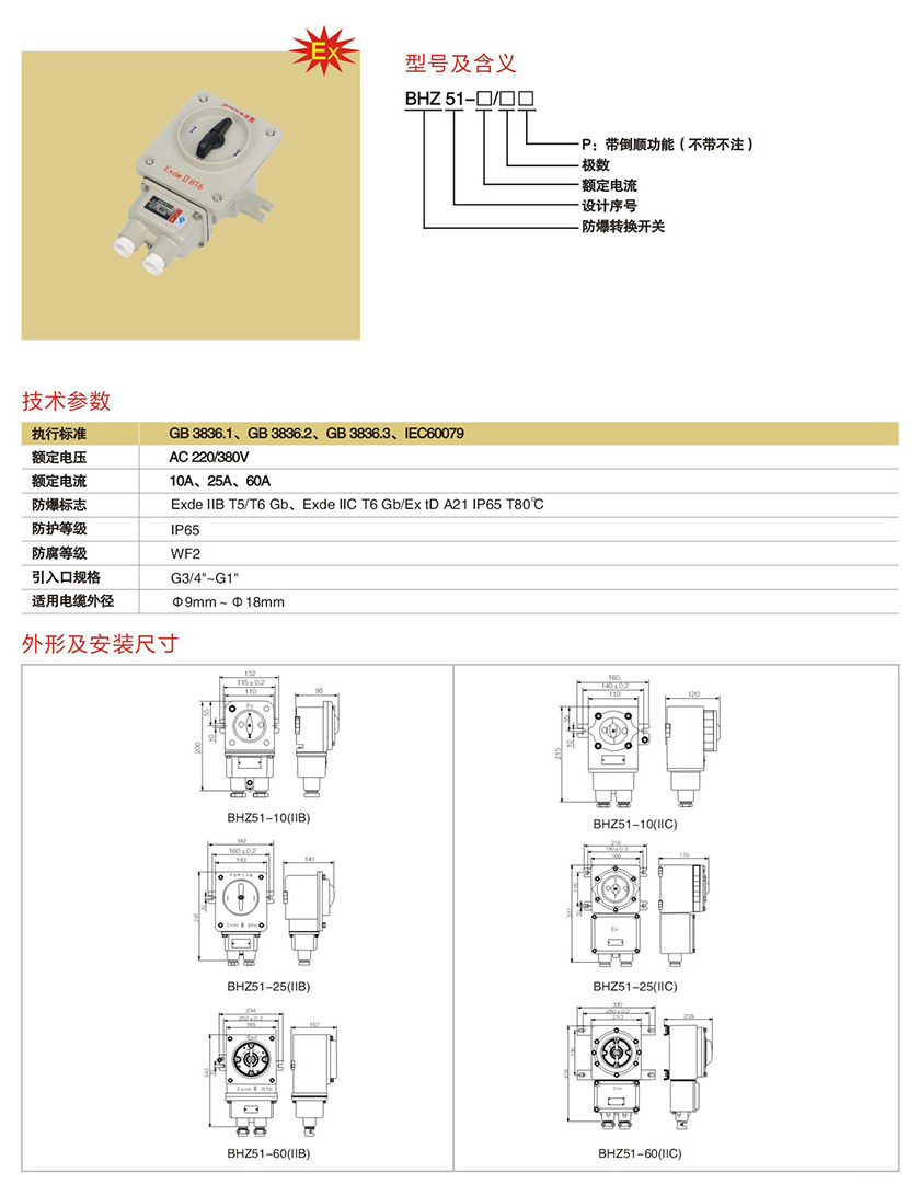 BHZ51系列防爆转换开关(IIB、IIC)