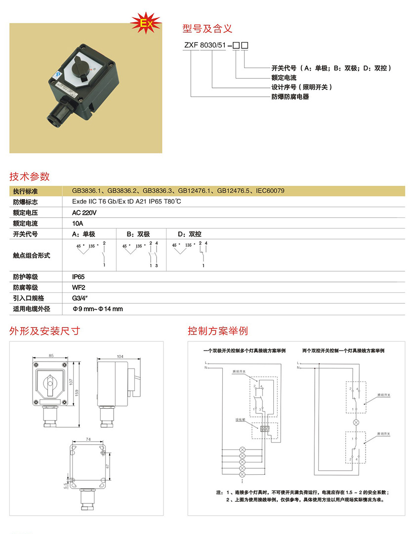 ZXF8030/51系列防爆防腐照明开关(IIB、IIC)