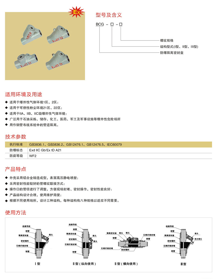 BCG系列防爆隔离密封盒(IIB、IIC)