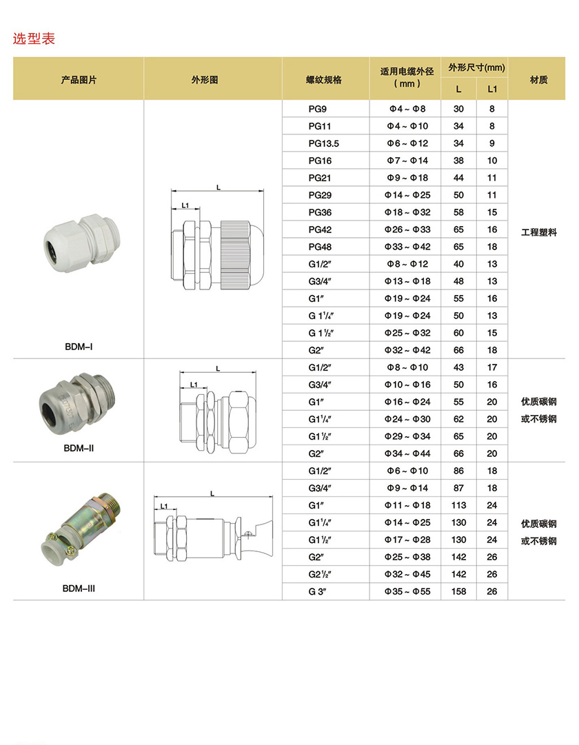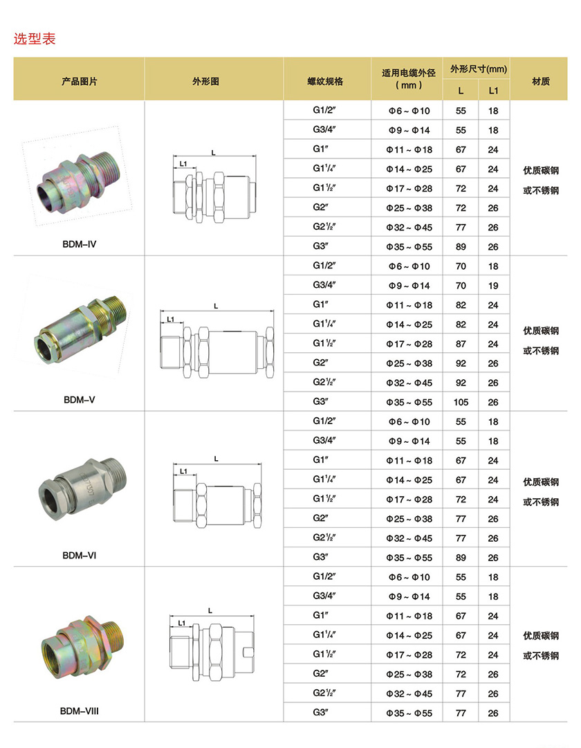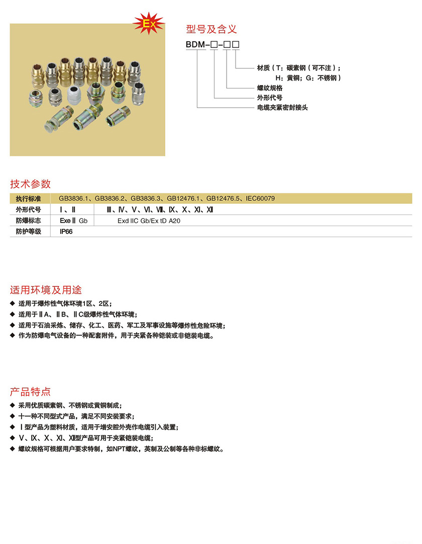 BDM系列防爆电缆夹紧密封接头(IIB、IIC)