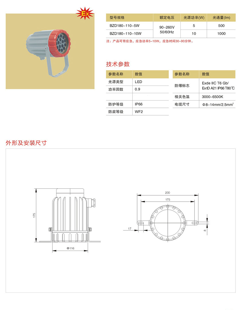 BZD180-107系列防爆免维护LED照明灯(IIC)